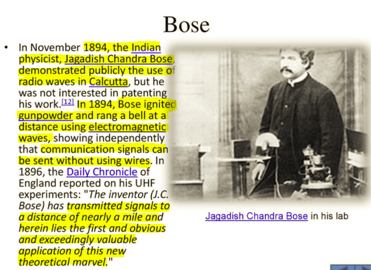 1894 in India 1st Communications using electromagnetic waves with out wires.