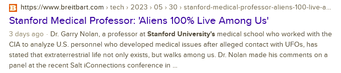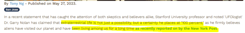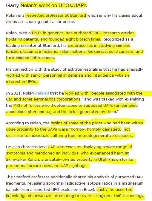 Stanford University professor Dr. Gary Nolan, a distinguished researcher, announced that he is “100% certain” that aliens have not only visited Earth, but “have been on Earth for a long time.”