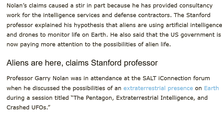 Aliens arrived a long time ago... and they're still here. Dr. Garry Nolan of the Stanford University School of Medicine ...