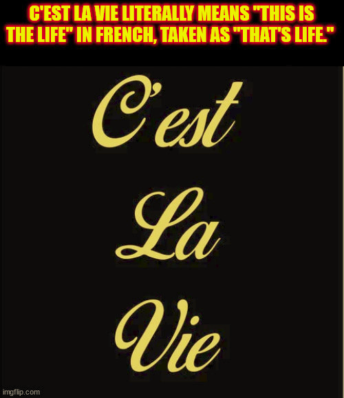 C'est la vie literally means "this is the life" in French, taken as "that's life."