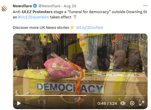 “Funeral for Democracy” ANTI ULEZ Protesters ON TIDAY / USE CARAVAN COFFIN & SIREN!
