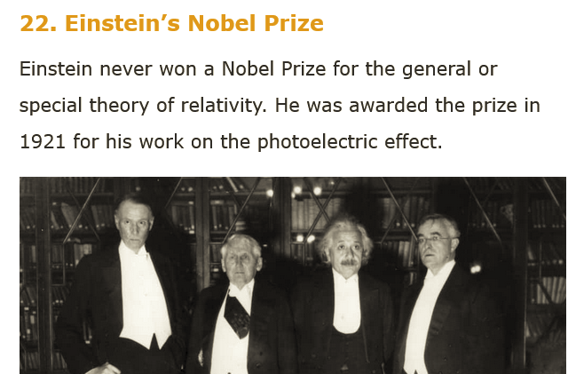 Einstein’s Nobel Prize Einstein never won a Nobel Prize for the general or special theory of relativity? > WHY!!
