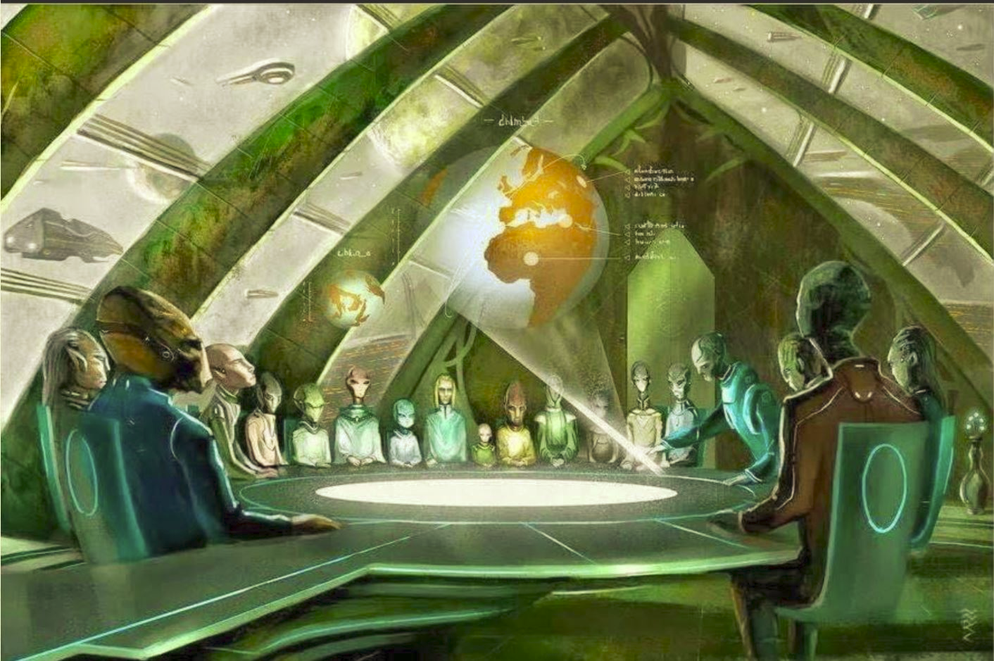 Beings from the Andromeda Galaxy convened the Council of Hatona of Earth's Atlanteans, other human and Reptilian groups on Earth, as well as the Reptilians in Earth's caverns.