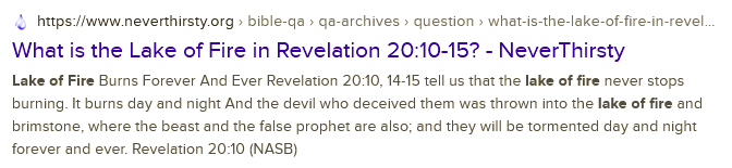 The LAKE OF FIRE We Die Once and Then the Judgment if the Judgment Is