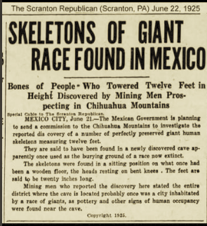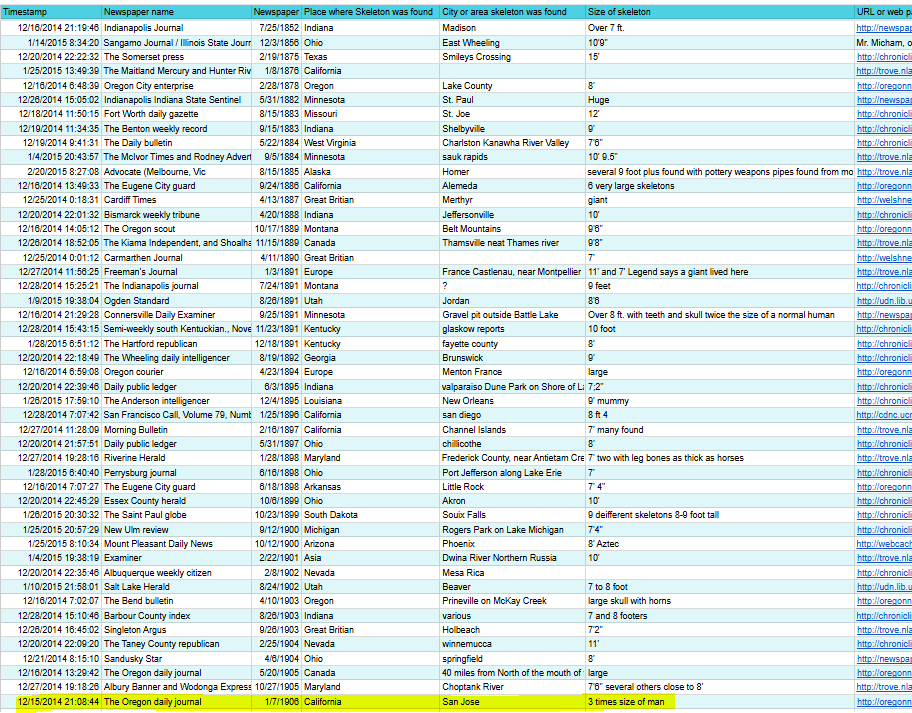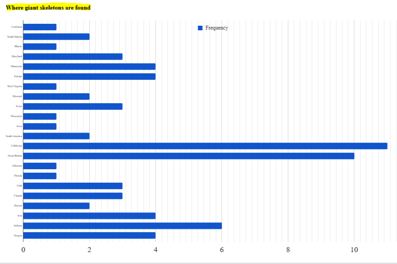 CHART OF WHERE GIANT SKELETONS HAVE BEEN FOUND - IN RECENT TIMES?