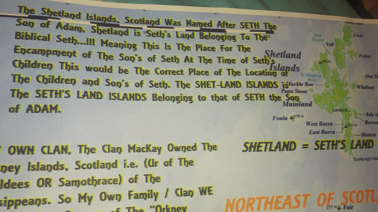 MY OWN CLAN, The Clan MacKay Owned The Orkney Islands, Scotland i.e. (Ur of The Chaldees OR Samothrace) of The Borsippeans. So My Own Family / Clan WE Are The True Owners of The ''Orkney Islands'' of Which Was The True Ur-of-the-Chaldees of The Bible. My Clan The CLAN MacKay Are The Sole Owners of The Real ''Ur of The Chaldees'' From The Bible (Orkney Islands, Scotland). The Orcheni Were The Orphics of The Orkney Islands, Scotland i.e. (Ur of The Chaldees OR Samothrace) of The Borsippeans. The Shetland Islands, Scotland Was Named After SETH The Son of Adam, Shetland is Seth's Land Belonging To The Biblical Seth...!!! Meaning This Is The Place For The Encampment of The Son's of Seth At The Time of Seth's Children This would be The Correct Place of The Location of The Children and Son's of Seth. The SHET-LAND ISLANDS is The SETH'S LAND ISLANDS Belonging to that of SETH the Son of ADAM.