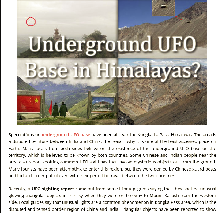 According to many, the UFO underground bases are in this region and both the Indian and Chinese Government know this very well but both the Governments refuse