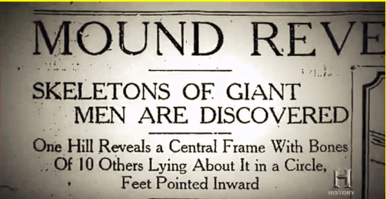 GIANTS FOUND IN MANY OF THE 50 BURIAL MOUNDS DISCOVERED "BY GOVERNMENT WORKER"