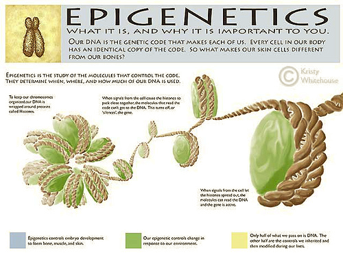 "Epigenetics is the study of how your behaviors and environment can cause changes that affect the way your genes work. Unlike genetic changes, epigenetic changes are reversible and do not change your DNA sequence, but they can change how your body reads a DNA sequence".