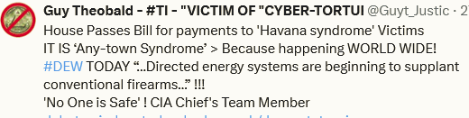 #targetedindividuals and #HavanaSysdrome are the same. The government is investigating one and trying hard to ignore the other.