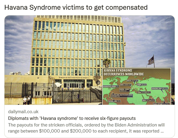 1) YES SERIOUSLY! > House Passes Bill for payments to 'Havana syndrome' Victims