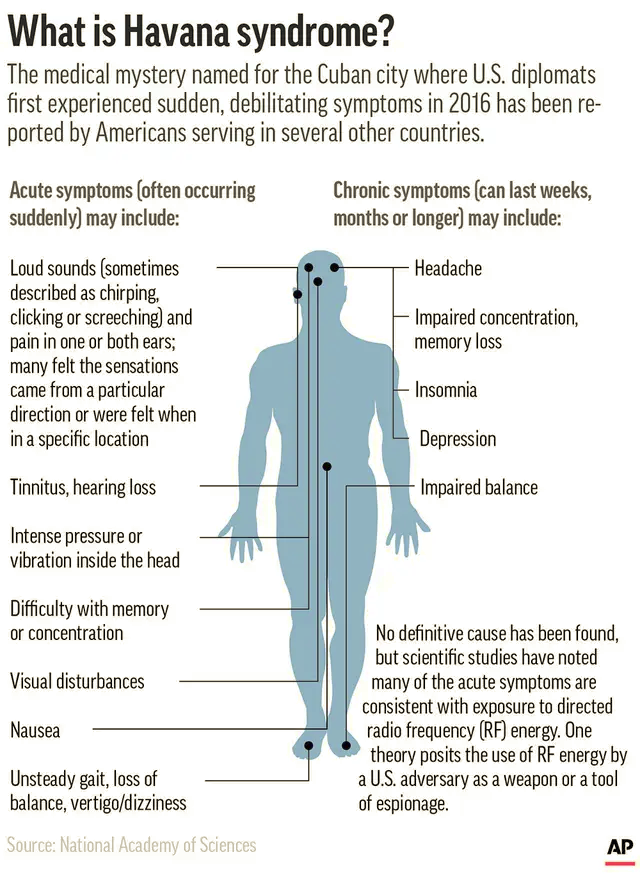 American officials in Cuba and China have experienced ‘Havana Syndrome’ : hearing strange sounds, then suffering dizziness, headaches and memory loss.