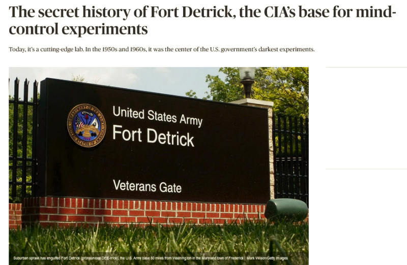 Secret history of Fort Detrick, CIA’s base for mind-control experiments