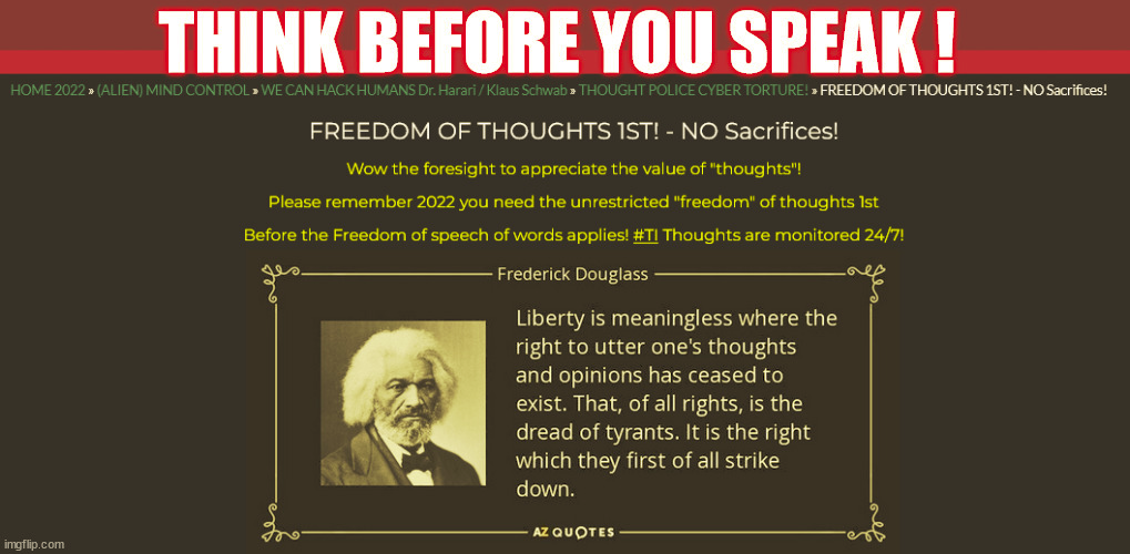 Before the Freedom of speech of words applies! #TI Thoughts are monitored 24/7!