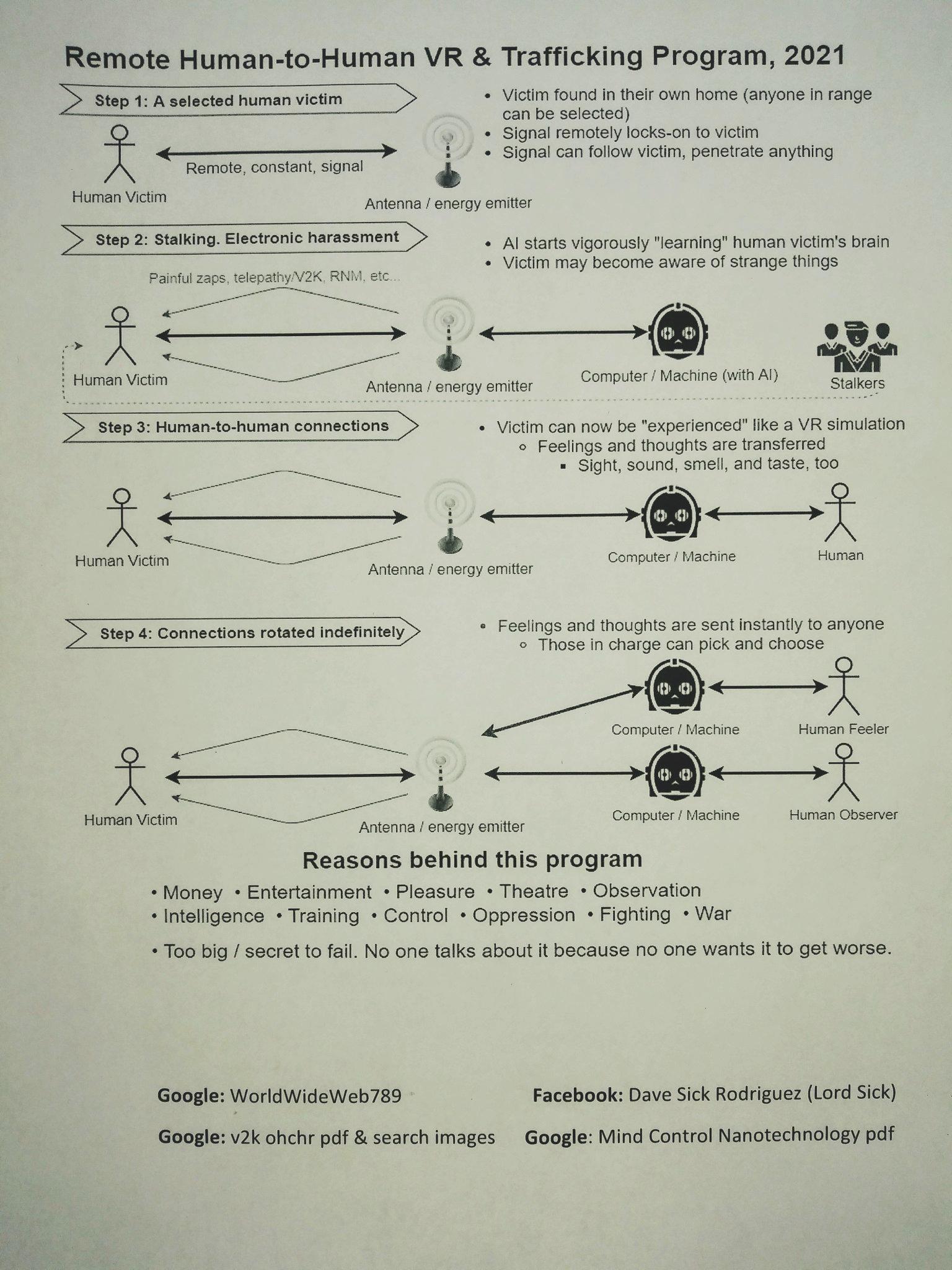 The slaves are being tortured and killed by means of the programs of Electronic Harassment, Gangstalking and Morgellons, among others.