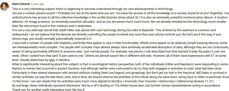 TEXT RECORDED BEFORE VIDEO IS REMOVED! - "Received an implant that continues to be monitored by aliens!"
