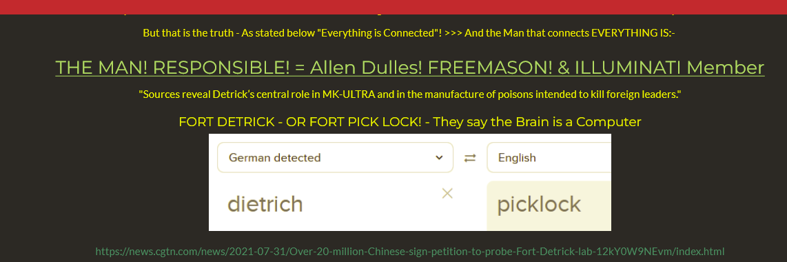 HOW DOES ALLEN DULLS MK ULTRA (MIND CONTROL) - LEAD UP TO CURRENT EVENTS  = Fort Detrick