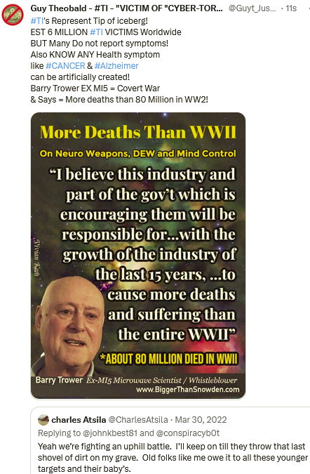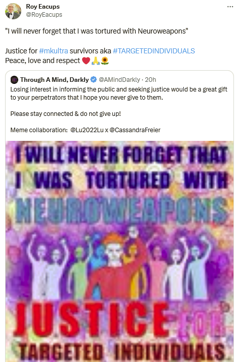 voices in their heads, suffering from ‘electronic torture’ and being subject to organised stalking - they call themselves ‘Targeted Individuals’. A number have attempted many