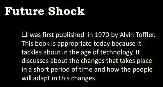 Alvin Toffler book Future Shock THE CHANGE HAPPENED TO FAST