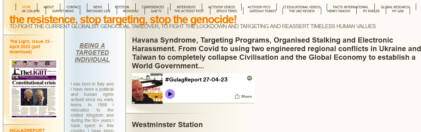 NOTE 2023 - LAST ENTRY = 2018...? Sadly That is a symptom of targeting / Gangstalking.