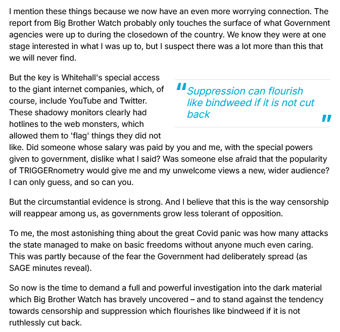 I am pretty sure (but cannot prove) I was the victim of shadow-banning. Someone had fiddled with the computer algorithms, which guide the searches everyone makes on the World Wide Web. A lot of people kindly protested. And as mysteriously as it had been applied, the ban evaporated, albeit too late. The audience for the interview was irretrievably reduced. That's not all – on January 25, 2021, YouTube posted a version of a conversation I had had with Mike Graham on Talk Radio. But 75 seconds of the original broadcast were missing.