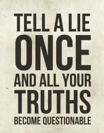 TELL A LIE ONCE AND ALL YOUR TRUTHS BECOME QUESTIONABLE