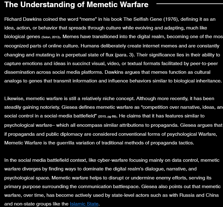 Memetic Warfare, these memes and comments play a considerable role in desensitizing individuals to violence.