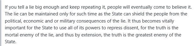 The lie can be maintained only for such time as the State can shield the people from the political, economic and/or military consequences of the lie.
