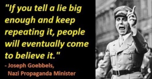 One of Hitler's "primary rules" was  a big lie sooner than a little one; and if you repeat it frequently enough, people will sooner or later believe it.