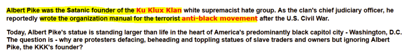 Albert Pike's KKK's founder statue honoring the man who wrote the blueprint for the New World Order & paved the way for one world government