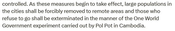 exterminated in the manner of the One World Government experiment carried out by Pol Pot in Cambodia.