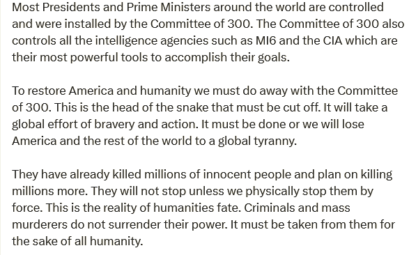 the UK Royal Crown Committee of 300.