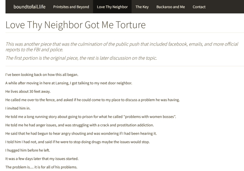 MANY PAGES HERE DESCRIBE WHY NEIGHBORS ARE INVOLVED - IN GANG STALKING AND ELECTRONIC HARASSMENT!