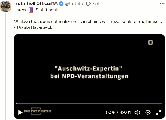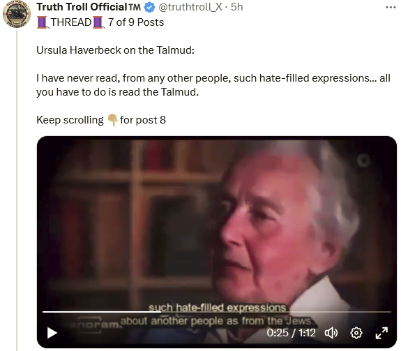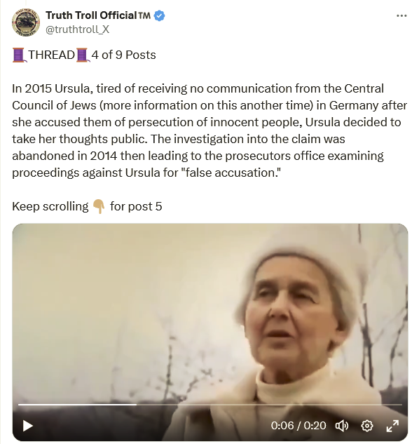 Ursula was asked to repent for claiming the holocaust is "the biggest and most persistent lie in history".