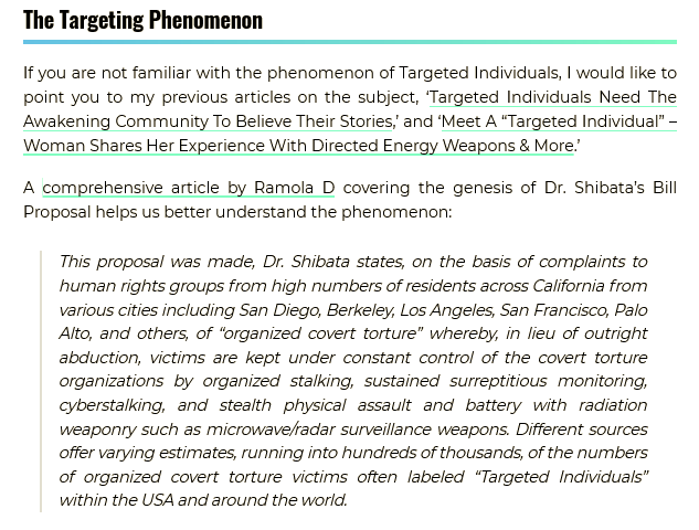 Non-Consensual Cover Research In a July 14 Facebook post, Geral Sosbee once more whistleblows on “Non-Consensual Cover Research” which targets of FBI/NSA Secret Policing are driven into, their entire lives targeted as their bodies, brains, and actions are assaulted nonstop, 24/7, in hideous and inhumane experimentation by covered parties which include factions of the military, Special Forces, and CIA. This is experimentation to rival the crimes of the Nazis in concentration camps during World War II and the crimes of the CIA exposed by the Church Committee in 1974.
