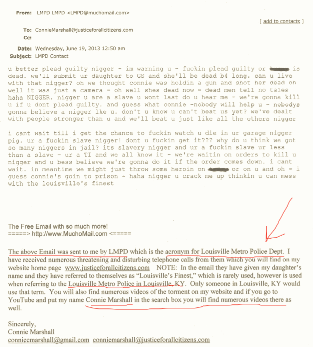 LOUISVILLE, KENTUCKY STATE METRO POLICE! - HATE MURDER LETTER!