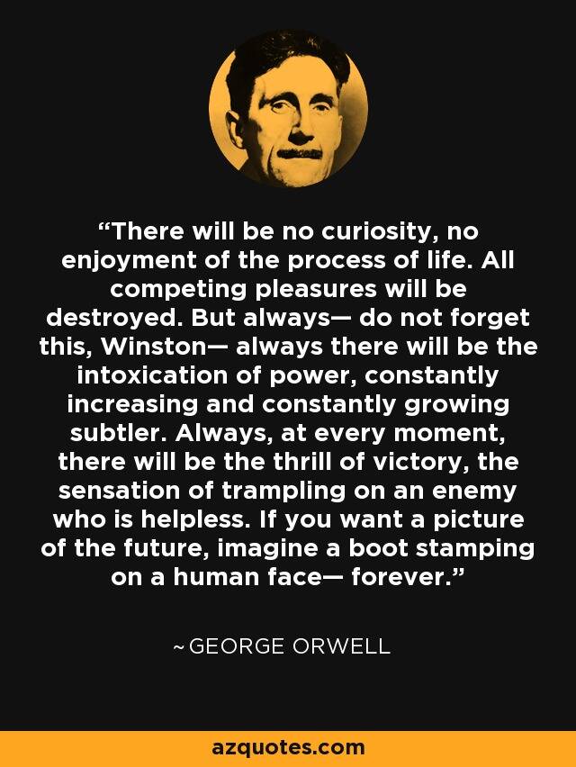 254) “A boot stomping on a human face, forever” (per George Orwell’s “1984)