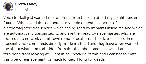 Gretta Fahey – MY SLAVE HANDLERS ARE BEING CRUEL TO ME. #V2K #RNM