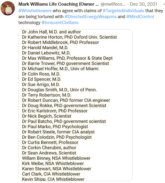 Mark Williams is a UK citizen who has been targeted by the illegal and treasonous NSA/MI6 worldwide technological mind control covert harassment operation.
