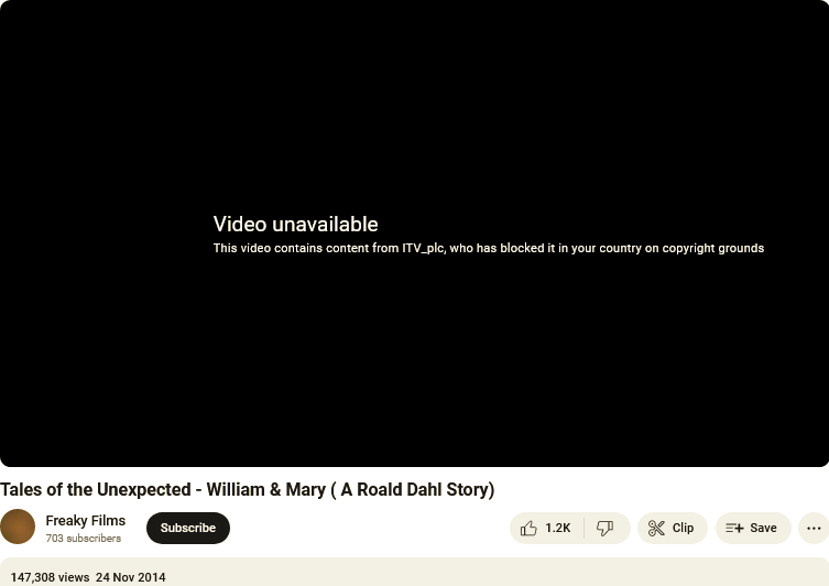 Tales of the Unexpected - William & Mary ( A Roald Dahl Story)