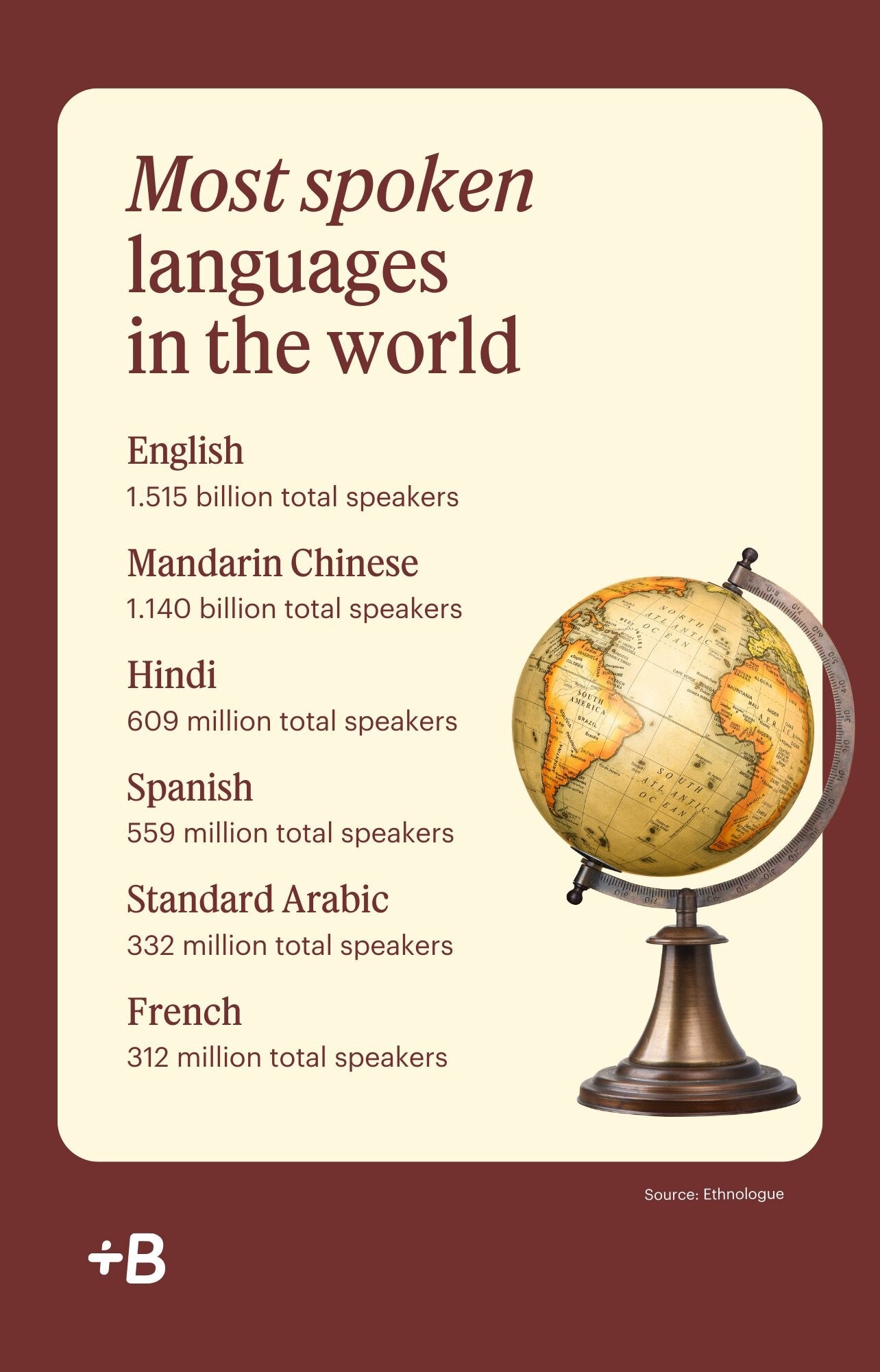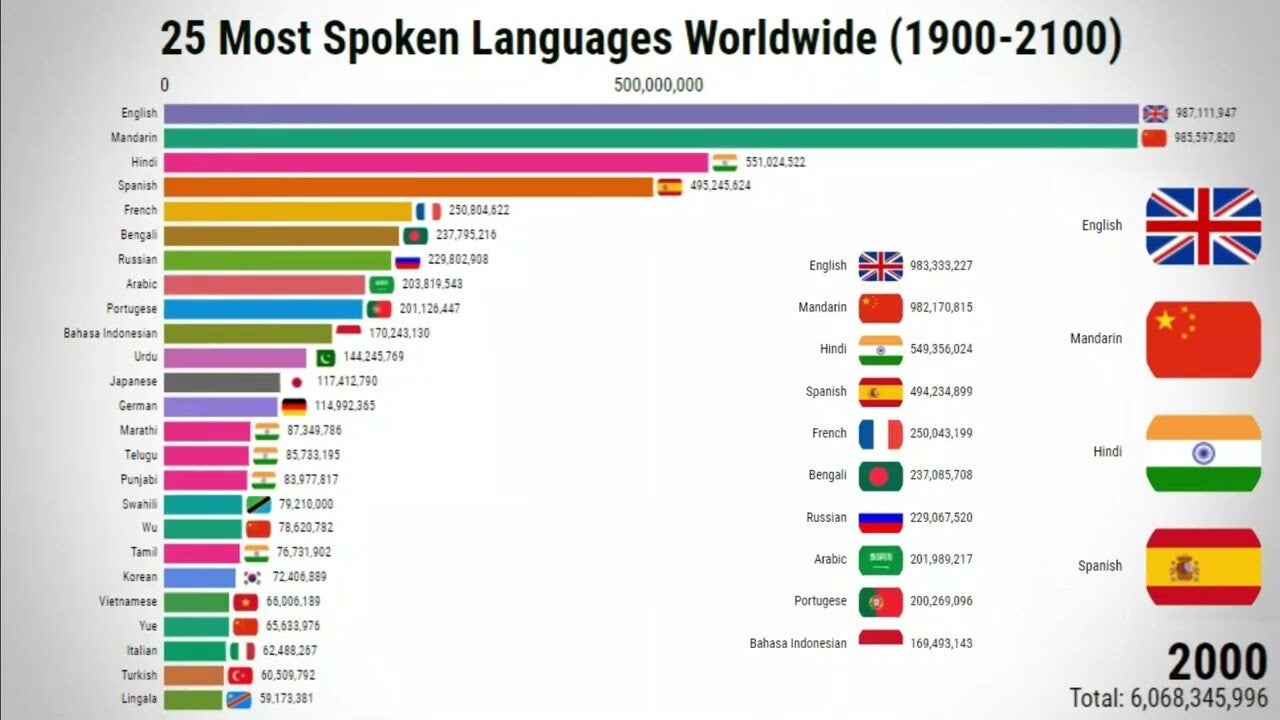 1. English (1A. (20) Japanese) 2. Mandarin Chinese 3. Hindi INDIA 4. Spanish 5. Standard Arabic